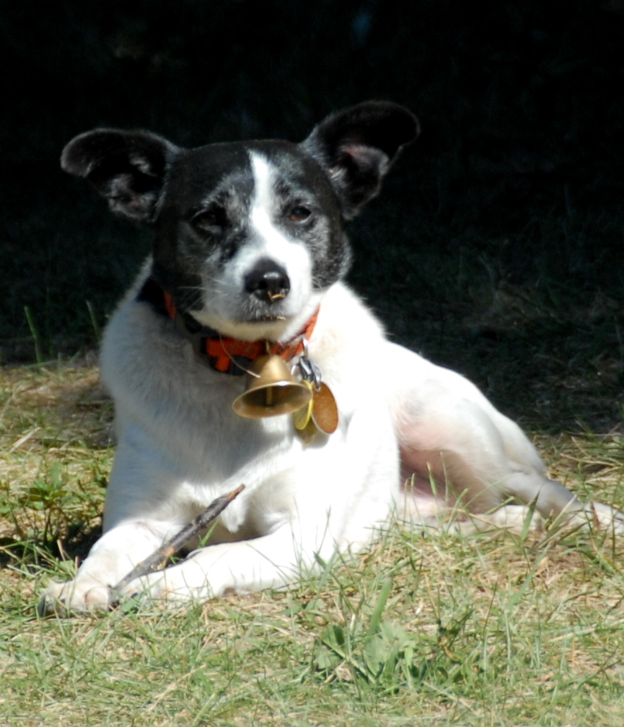 Before biking to the Morris Plains Farmers Market, Scraps and Rags joined us for an enjoyable hour or so at Central Dog Park. There weren’t any dogs in the small dog park when we arrived at 10:40 a.m. so we did a lap around the big dog park and then hung around the center area of the big dog park watching shepherds and hounds play on the rolling waves of grass. We also saw this really cool looking dog who was a little bigger than Scraps called Tallulah who wore a bell around her neck, so she is now known and welcomed as TallulahBelle to this blog. Finally we heard an owner referring to his dog as Scrappy, so that may be the other Scraps that lurks around this neck of the woods.