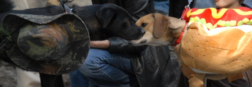 Though technically not the dog park, the 1st ever Morristown Dogs’ Halloween Costume Parade turned Morristown and the green into freaky doggy park. Dogs and people are in costumes marching in and around Morristown and Halloween isn’t for another week.