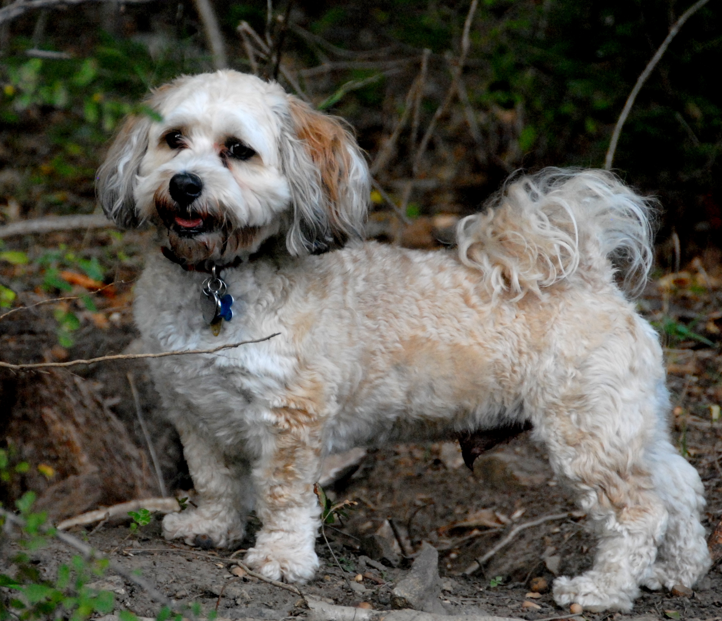 There weren’t any dogs in the small dog park so we went all went right to the large one and met up with Patches who came running over to Scraps but didn’t see to care thereafter; strange? There was this nice family of 4 small dogs we met when we first walked in including a cute white fluffy Pierre. I forget the other 3 dogs names. There was a real cool play session between a little Boston looking terrier and a mutt-a-doodle type of dog. It was just as precious and the waning sunlight.
