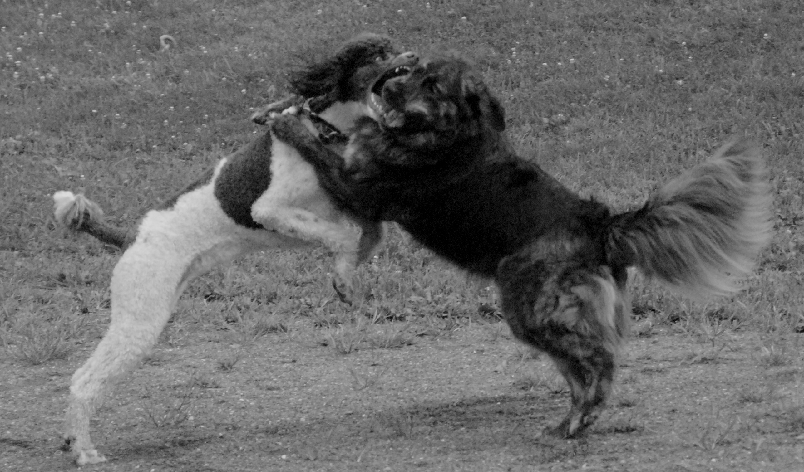 Scraps and Rags haven’t been at the dog park for over a week as we were all busy competing in a dog agility trial over the week end. We got there pretty early, before most of the other dogs. At the park were SammyBlack, Goji, Phoebe and a new dog to us and the blog, Cookie a Golden who quickly pinned Scraps against the fence and overwhelmed him in a pretty frightening manner. He then proceeded to do the same to Rags. We boogied into the small dog park and threw a few balls around until Cookie left. I hope we don’t meet him again.