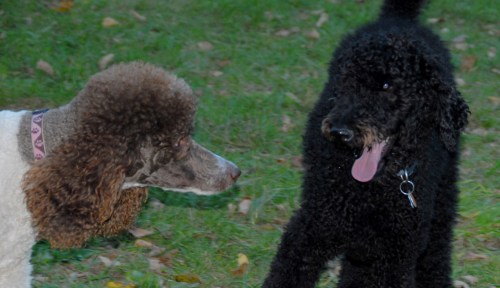 We saw Lily, the brown and white Poodle, who we used to often see at the Denville dog park. Lily eventually found some dogs to play with, so that was good to see. We hung with the group of 4 hot dogs hanging around trying their best to cause and not to cause chaos. Eventually, Forrest the the brown-eyed while Jack Russell, showed up and he got Rags going where they were chasing each other for a little while. When Patches and MiloLong showed up, Forrest gravitated to Patches filling the void Scraps would have liked to fill. On this day Scraps was just a bystander. Good thing, because as Patches and Forrest were going at it two larger more intimidating dogs were surrounding the two of them and barking like mad. That would have made me nervous. Patches says, “Bring it on.”