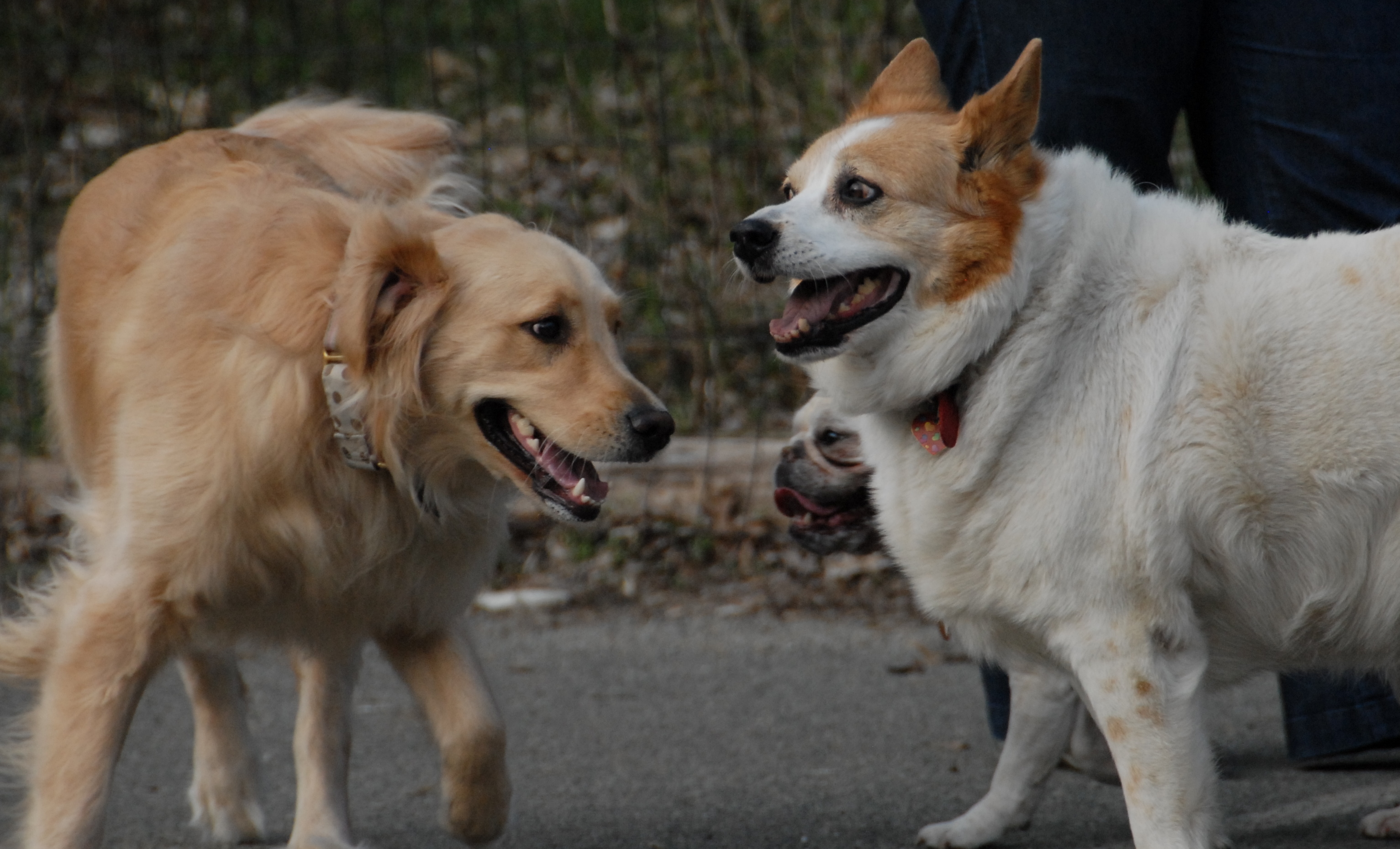 With a freshly cut lawn, the dog park should have attracted more dogs tonight than it did but it is what it was. When Scraps and Rags arrived around 5:30 Sebastian was pacing by his lonesome in the small dog park and his mom was so excited to see Scraps and Rags for him. Not that my dogs did anything in the small dog park but their own personal business. They paid no attention to Sebastian. All they seemed to care about was that I was going to have to give them baths tonight, if you know what I mean.