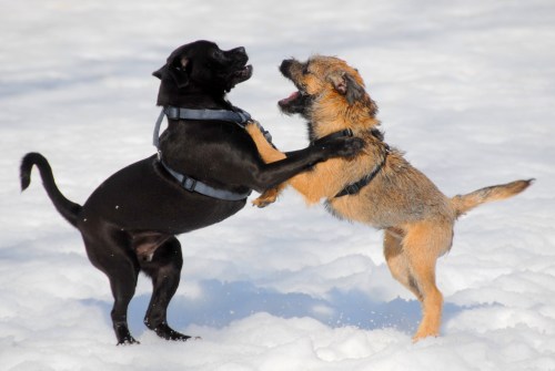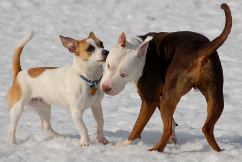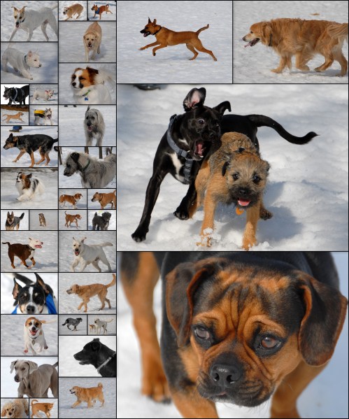 This Sunday was a much nicer day than yesterday. It was sunnier, warmer and the snow was softer on the dogs’ paws. This brought out lots of dogs including my beloved Scraps and Rags. We first went to the small dog park where we played with many of the same dogs we saw yesterday.